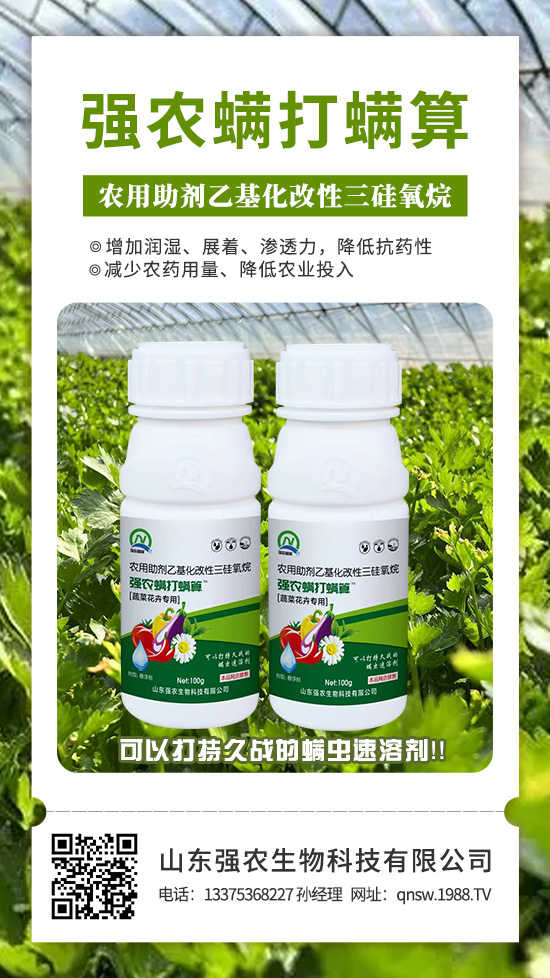 強農(nóng)螨打螨算是山東強農(nóng)生物科技有限公司與華中農(nóng)業(yè)大學(xué)有機溶劑研究院經(jīng)過多年努力螯合萃取而得的新型溶解劑。又通過高新納米技術(shù)添加了高滲透溶解液,使本品對以柑橘、瓜果蔬菜為主的各種紅蜘蛛、二斑葉螨、茶黃螨等螨類成蟲及蟲卵噴施后快速穿透害蟲表皮蠟質(zhì)層、油脂層和磷脂層使其快速脫水干枯而死,使用本品藥效。
