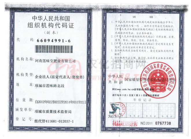 • 組織機構代碼證組織機構代碼證