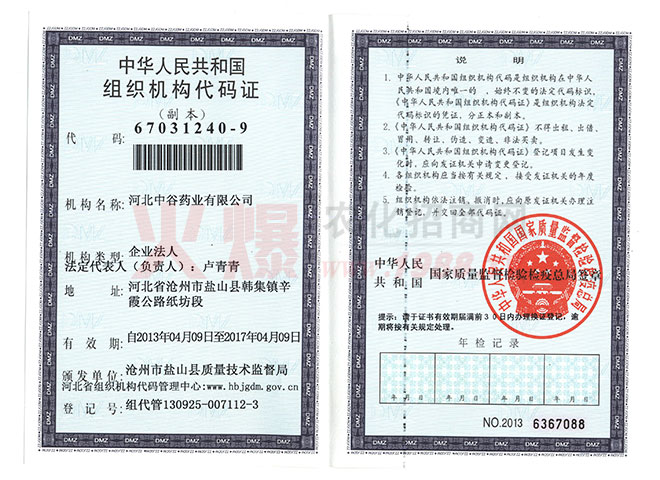 證書名稱:組織機構(gòu)代碼 發(fā)證機構(gòu):國家質(zhì)量監(jiān)督檢查檢疫總局